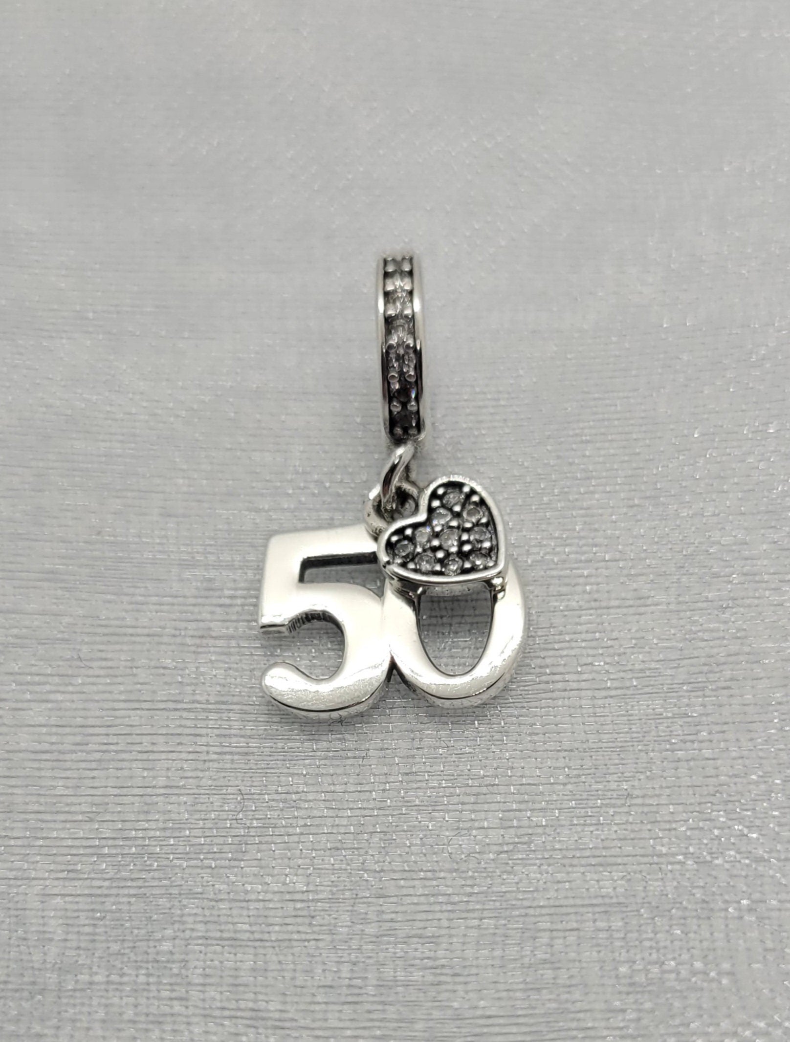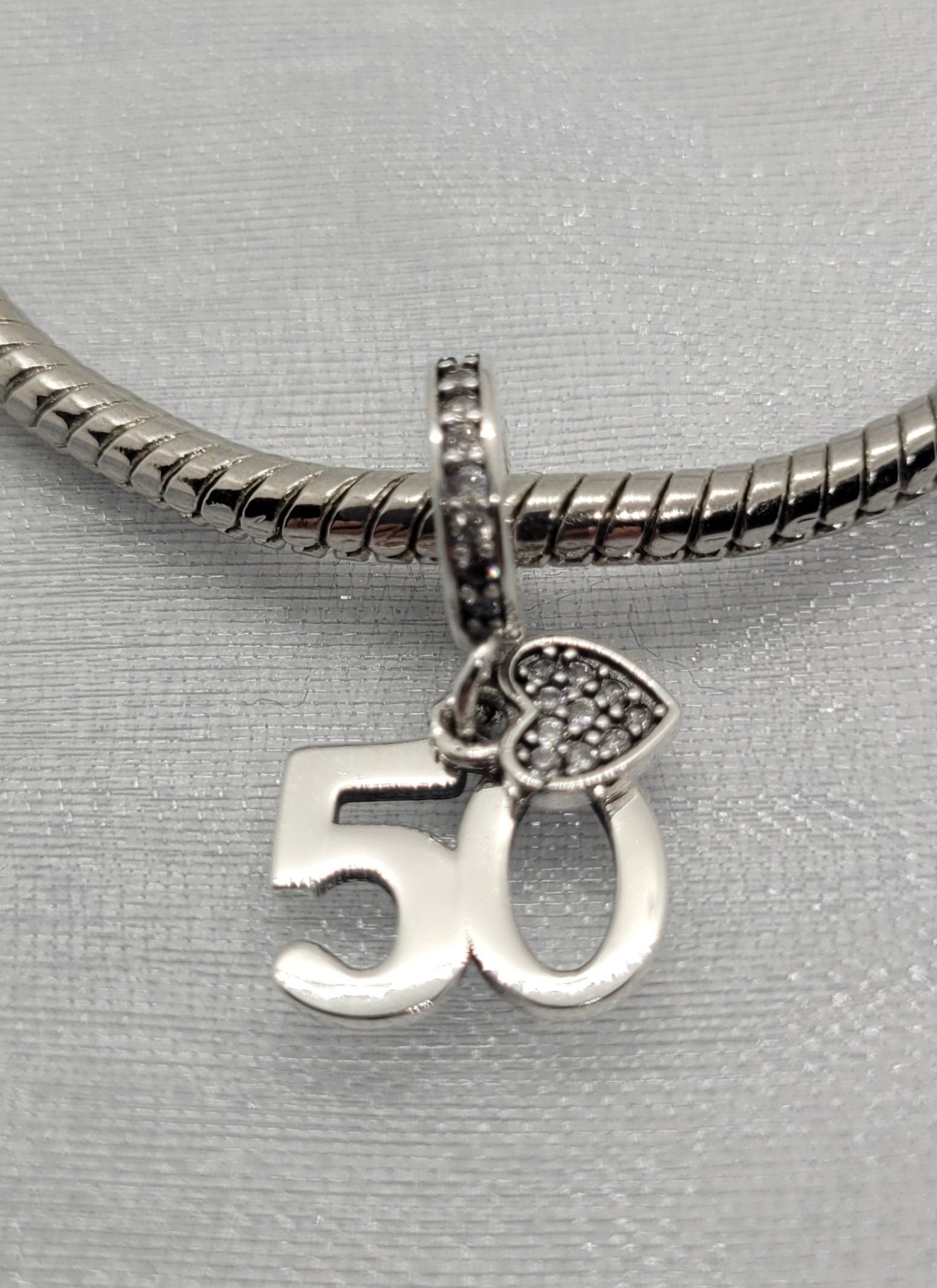 50th Birthday Celebration, 925 Sterling Silver 50th Birthday Dangle Charm Bead Landmark Birthday Fits all Charm Bracelets 50th Anniversary