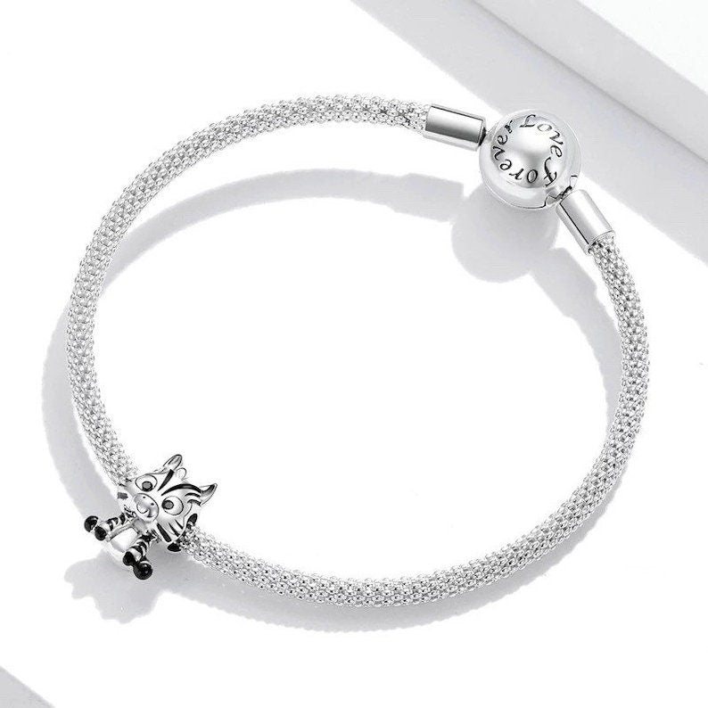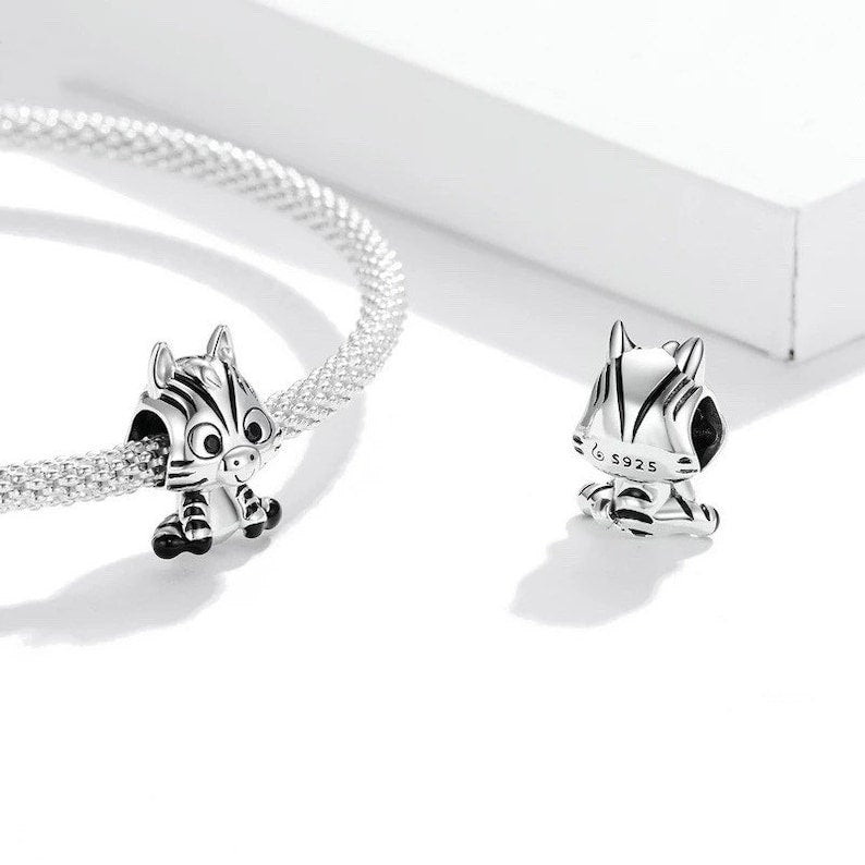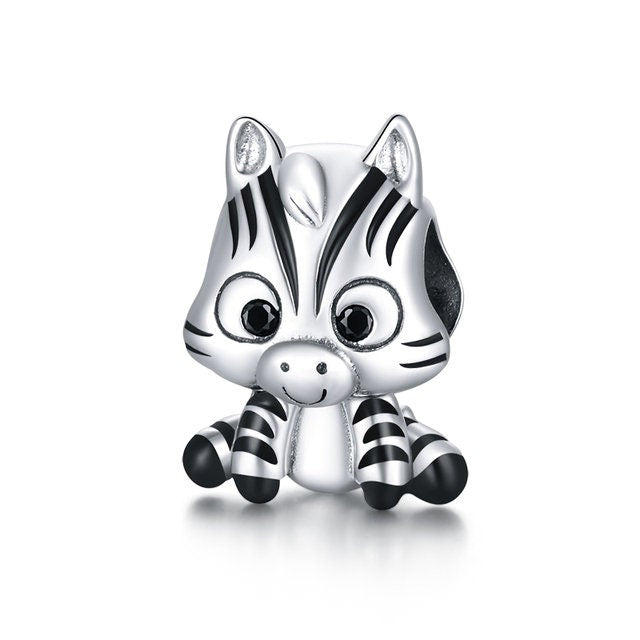 African Zebra Baby Animal Bead Charm Made From Sterling Silver 925 And Enamel - Compatible With European Charm Bracelets