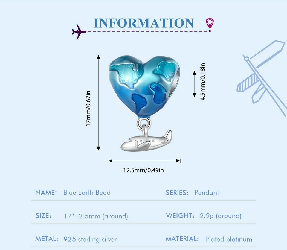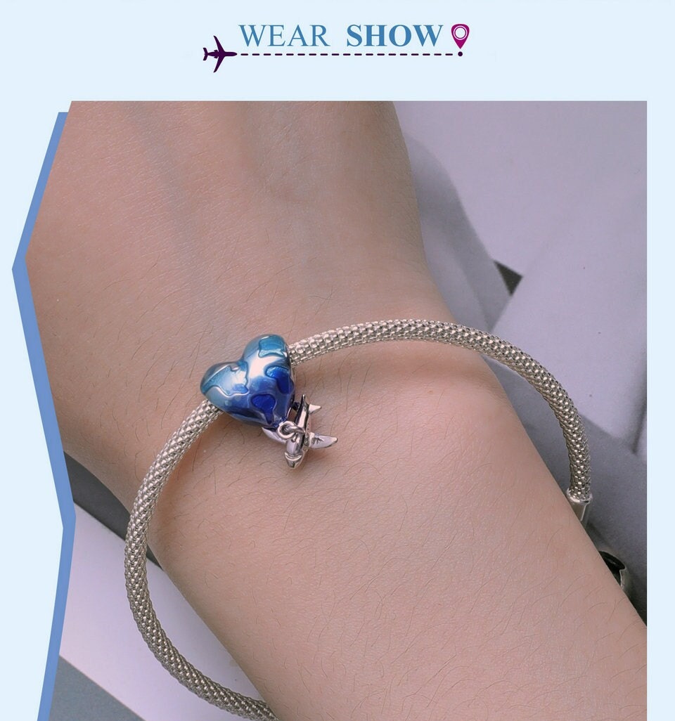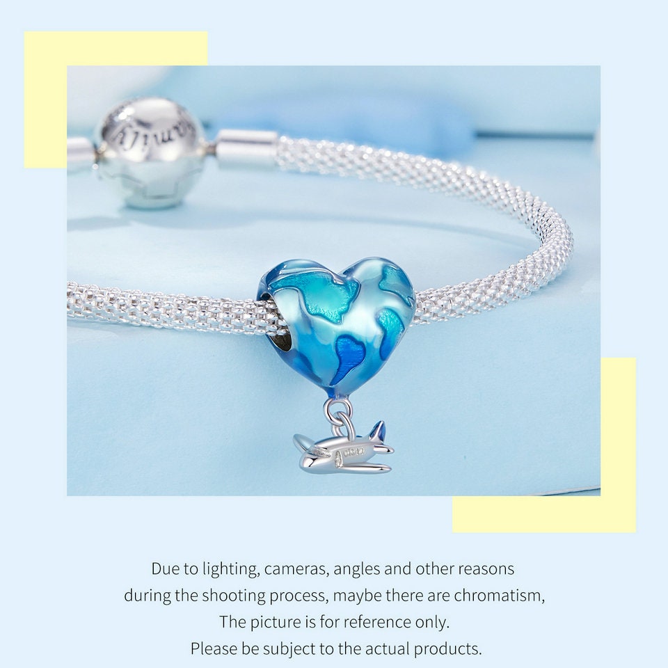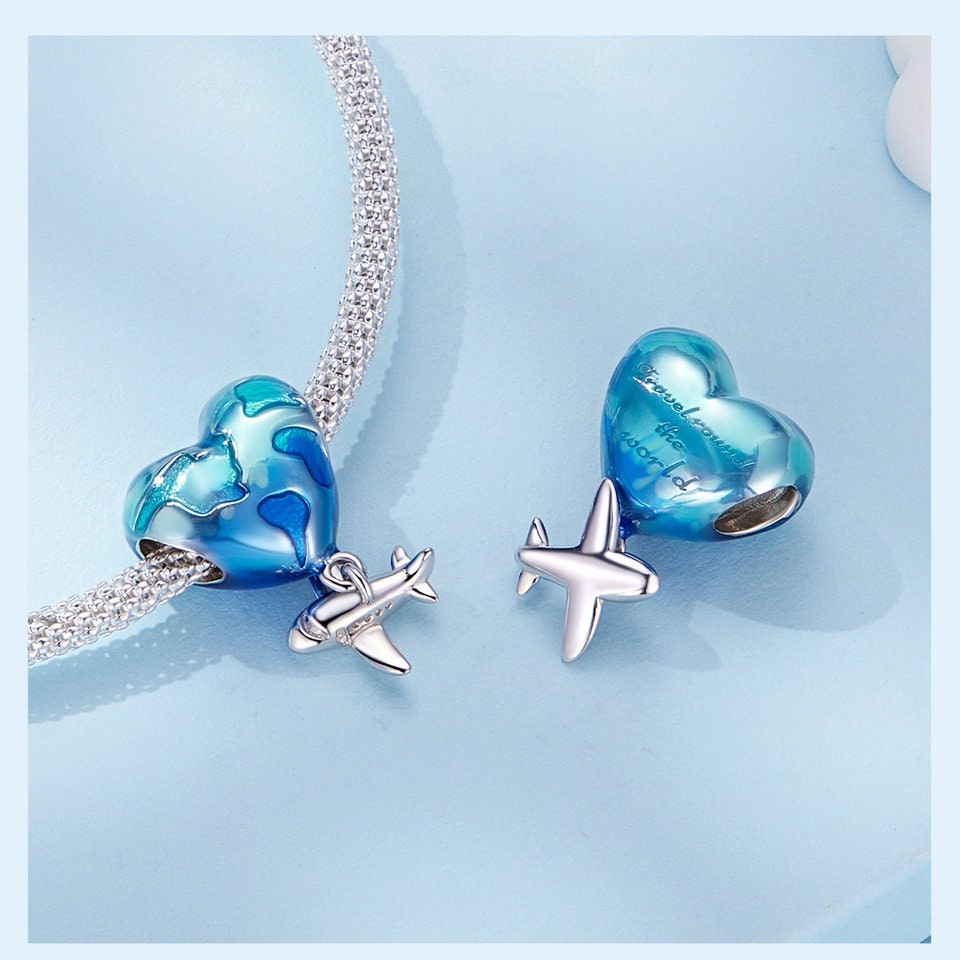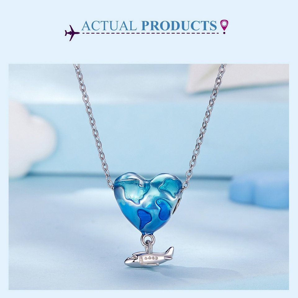 Airplane balloon globe world map European style Charm Sterling Silver Charm, Bracelet Necklace Charm, 925 Charm