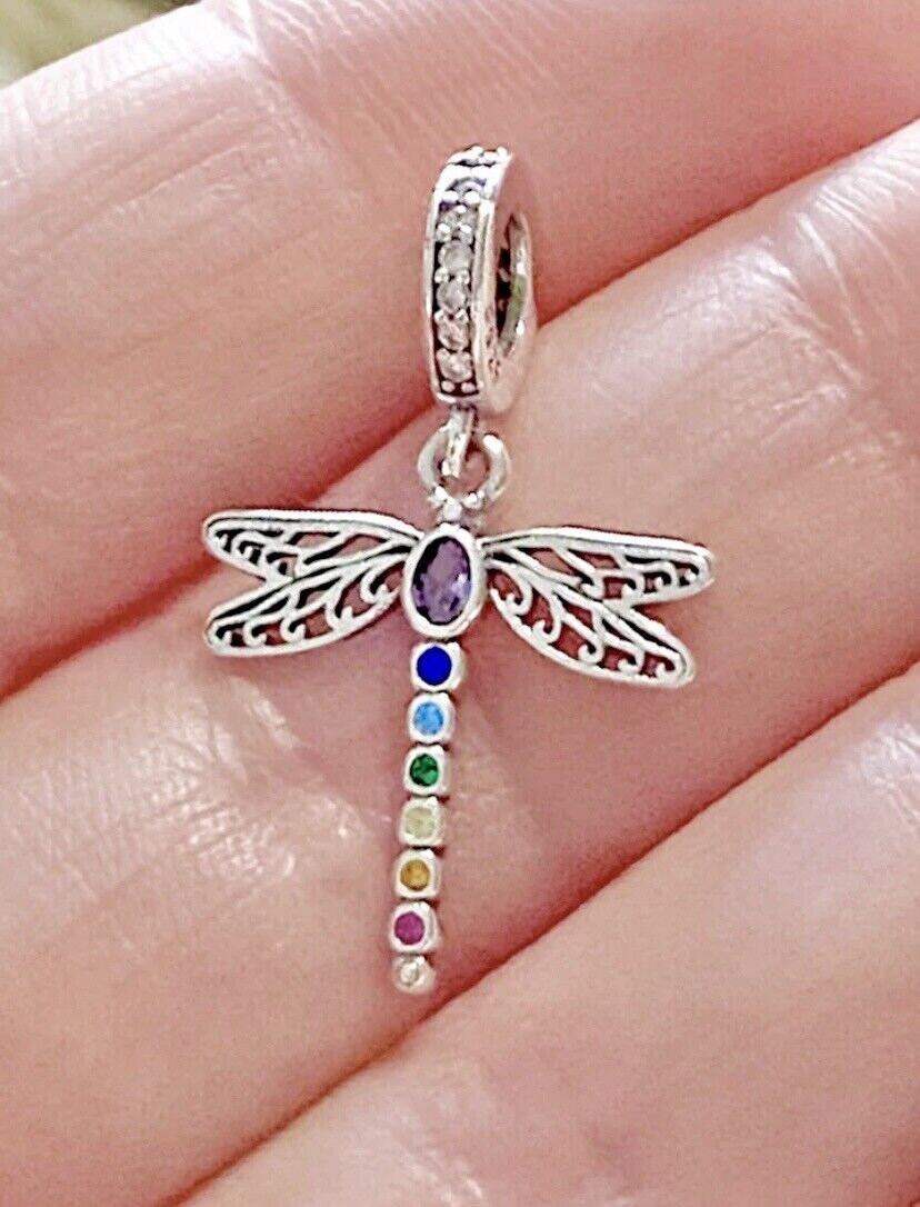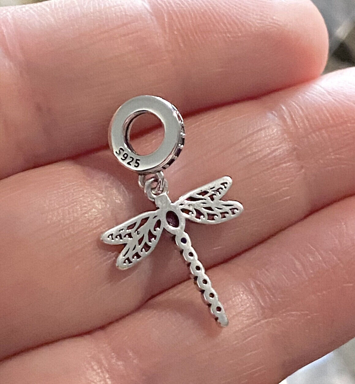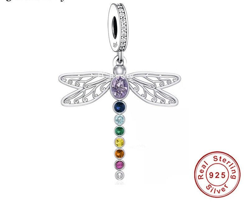 Chakra Dragonfly Dangle Charm 925 Silver Charm European style Bracelet, 925 Charm, Gifts for her
