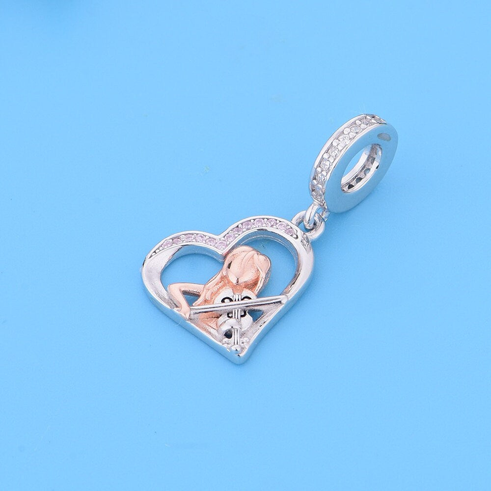 Girl Playing Violin Charm Fit Bracelet, 925 Sterling Silver Music Jewelry Keepsake Gift-Violin Teacher Gift