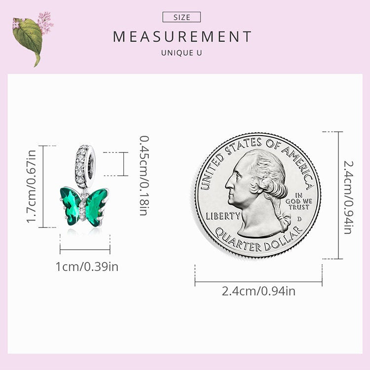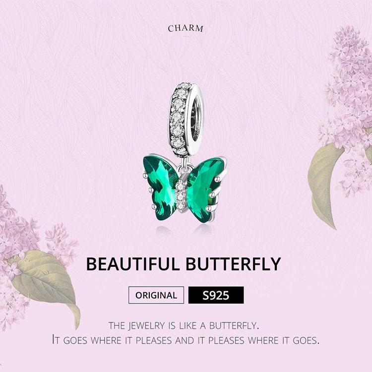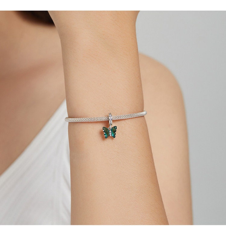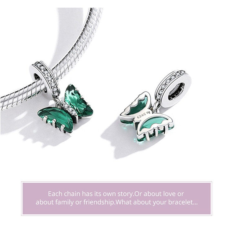 Green Butterfly Charms European style Bracelets,925 Sterling Silver, Butterfly Necklace Pendant, Butterfly Jewelry, Butterfly Gift