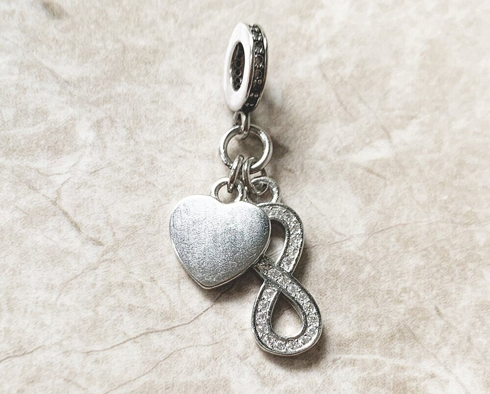 Infinity Charm Infinity heart Charm 925 Silver Charm European style Bracelet, Necklace charm