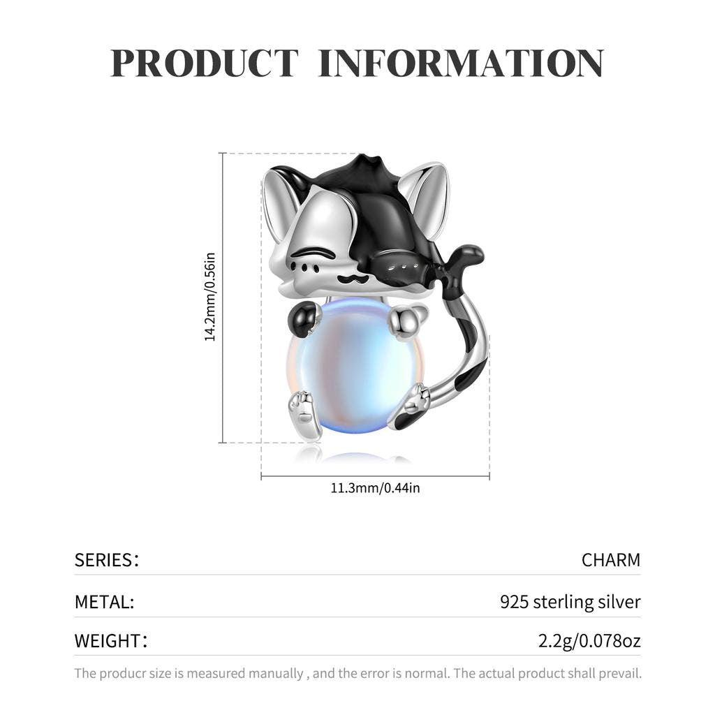 Moonlight Stone Kitten Charm European style Bracelets,925 Sterling Silver, Cat Necklace Pendant, at Jewelry,Cat Gift, Cat Charm