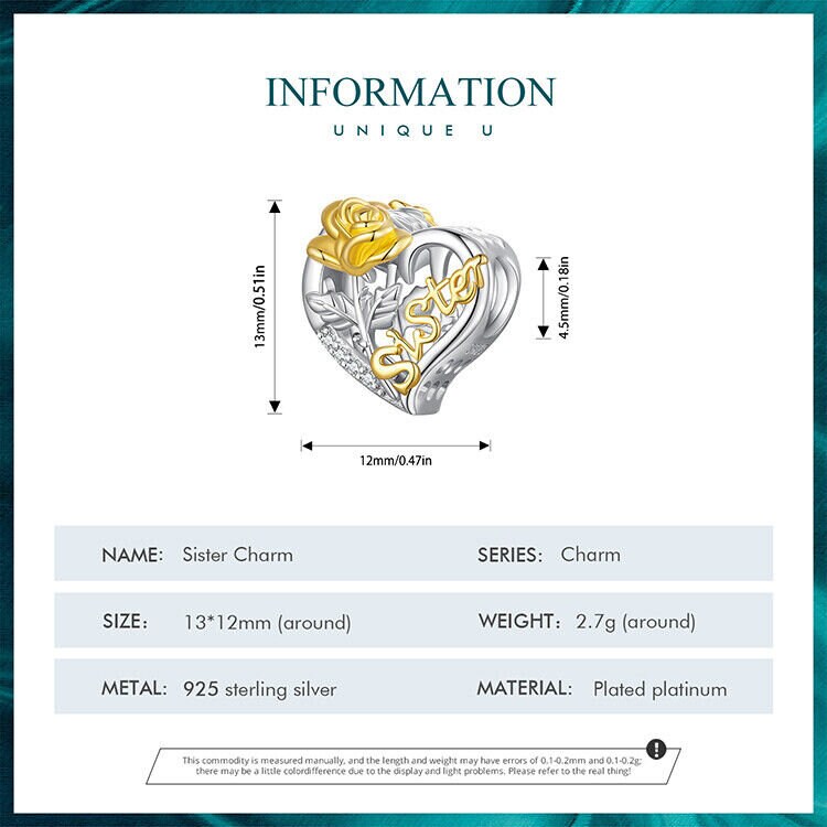 • Sister Heart charm 925 Silver Charm European style Bracelet, Necklace Charm, 925 Charm, Gifts for her Heart Charm Sister Charm
