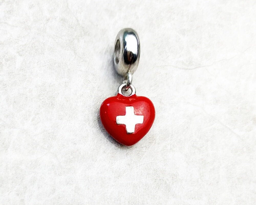Switzerland charm, Swiss Charm, Red Cross Heart Pendant Dangle Charm, 925 Sterling Silver, Swiss Jewelry, Swiss Gift Keepsake Switzerland charm, Swiss Charm, Red Cross Heart Pendant Dangle Charm, 925 Sterling Silver, Swiss Jewelry, Swiss Gift Keepsake
