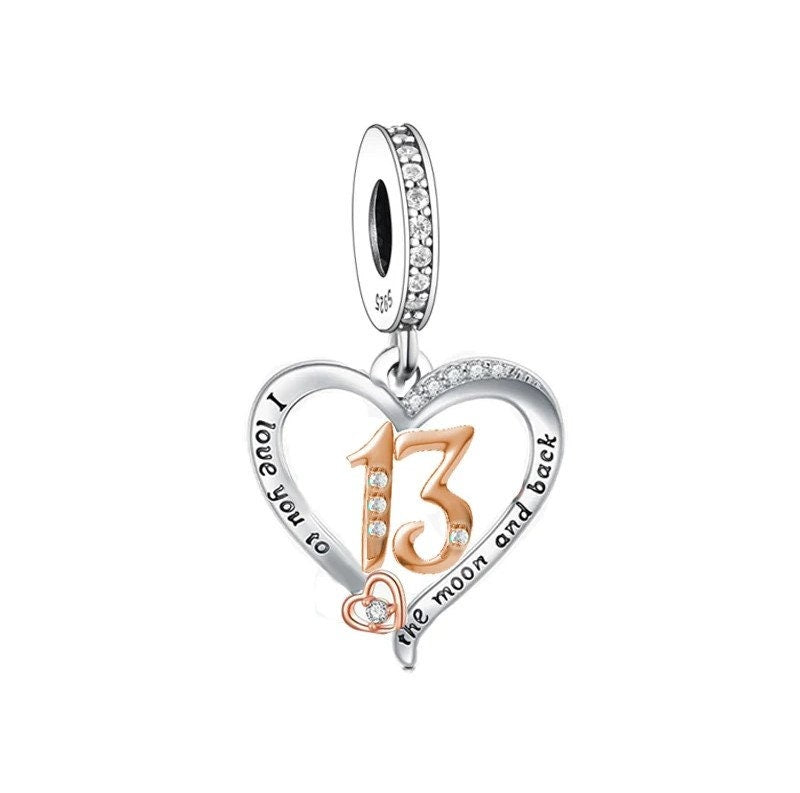 Teenager Birthday 13th Birthday 925 Sterling Silver 13th Birthday I love you to the Moon and Back Landmark Birthday Heart charm