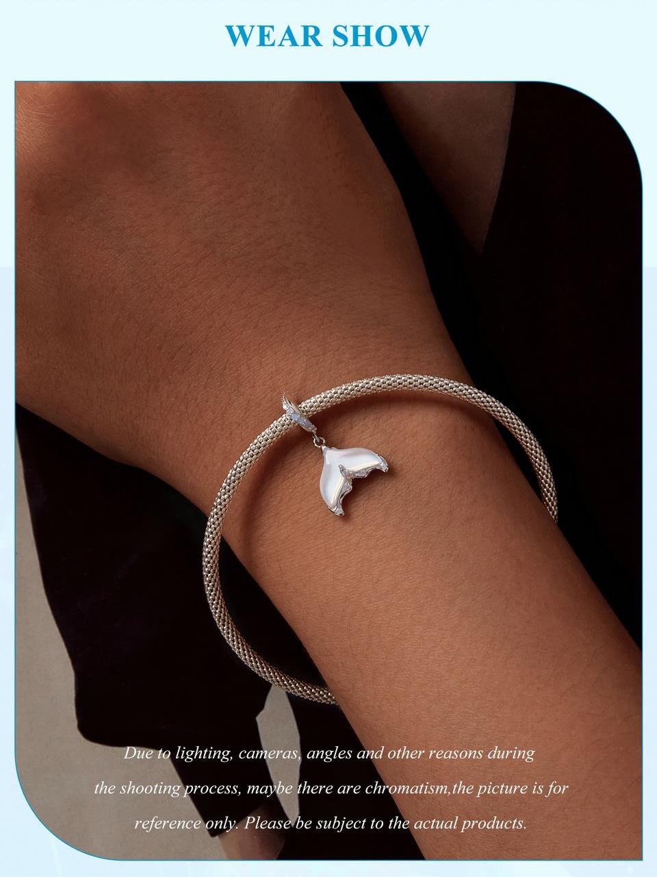 Whale Tail Ocean Dangle Charm 925 Silver Charm European style Bracelet Necklace Whale Charm, Dolphin Charm