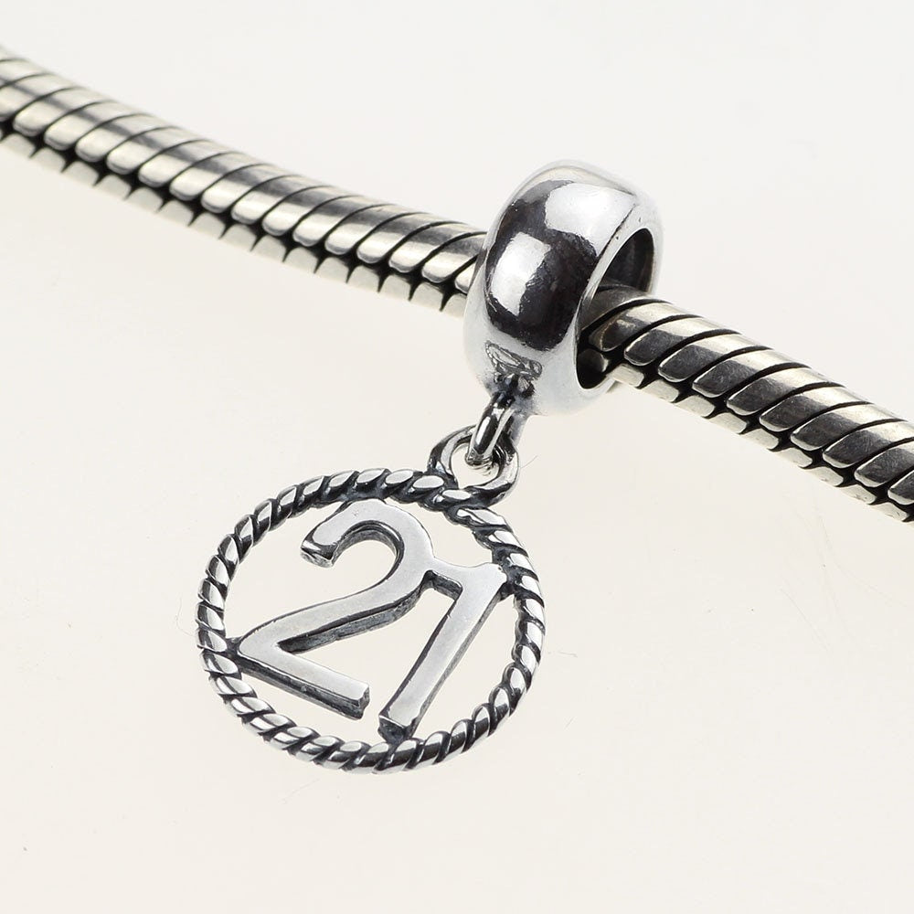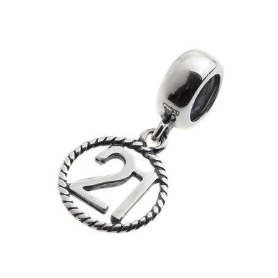 21st Birthday Celebration, 925 Sterling Silver 21st Birthday Dangle Charm Bead Landmark Birthday Fits all Charm Bracelets 21st heart charm