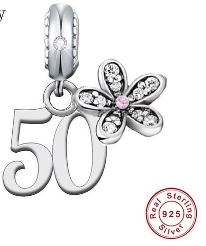50th Birthday Celebration, 925 Sterling Silver 50th Birthday Dangle Charm Bead Landmark Birthday Fits all Charm Bracelets 50th Anniversary