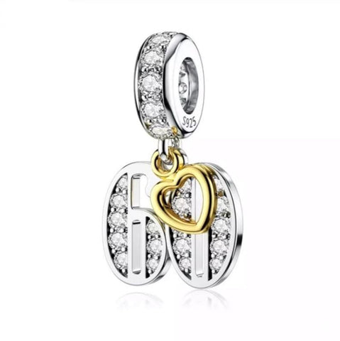 60th Numbers Anniversary Birthday Charms fit all major brands of charm bracelets Landmark Birthday Fits all Charm Bracelets 60 years old