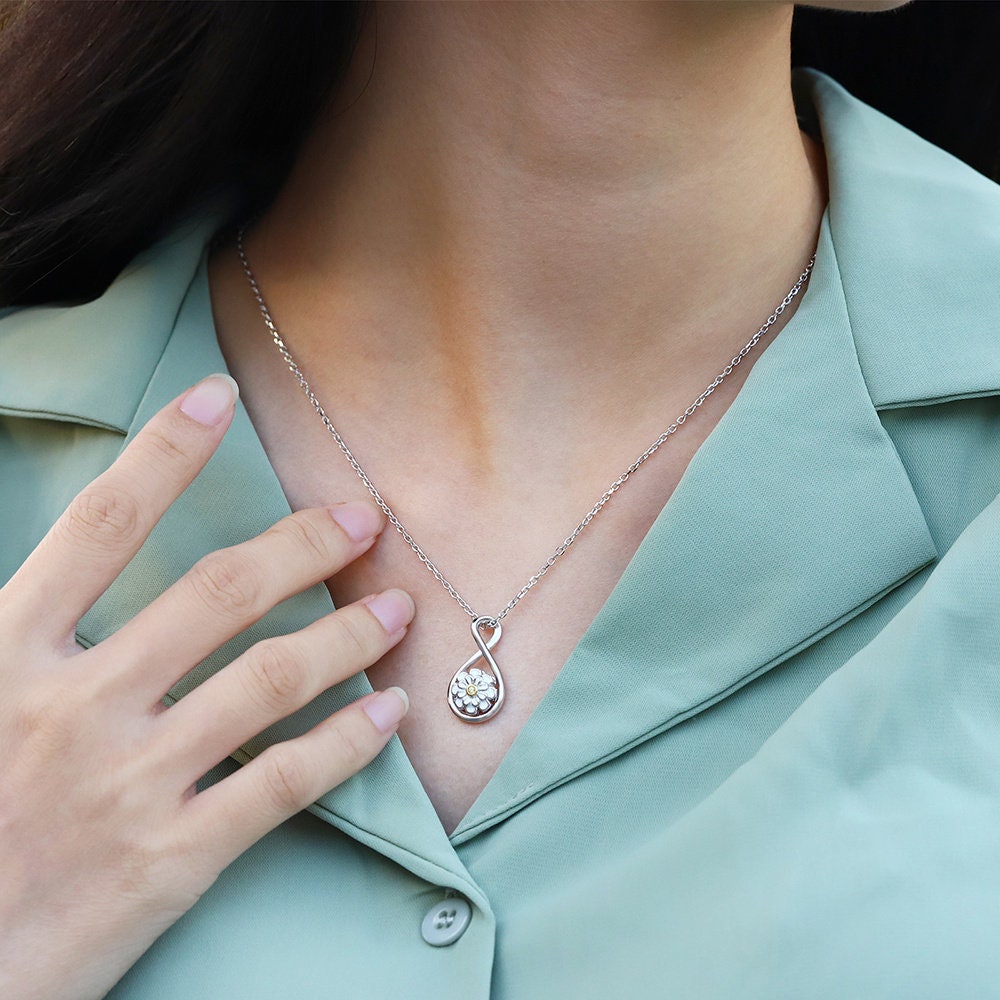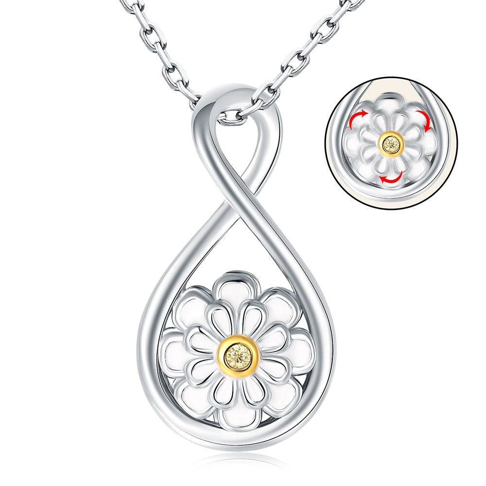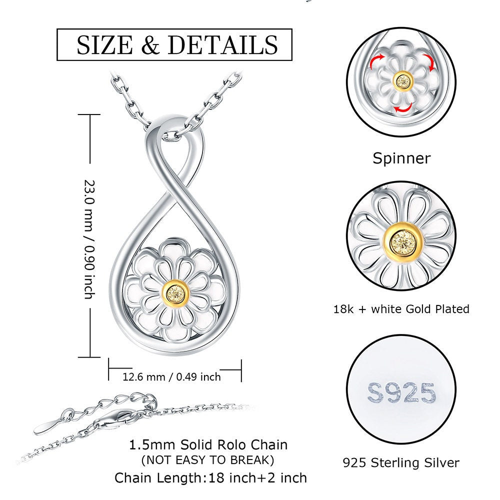 925 Sterling Silver Infinity Rotatable Spinner Anxiety Fidget Daisy Pendant Necklace includes 40cm chain and 18k gold plated 5cm pendant