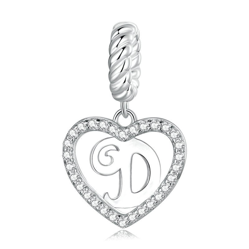 Alphabet Letter D Heart Dangle Charm 925 Silver Charm European style Bracelet , Necklace Charm, 925 Charm, Gifts for her