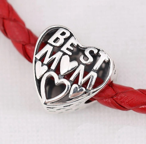 Best Mom Heart charm Brand New S925 Sterling Silver Heart Charm Charm Fits all Charm Bracelets