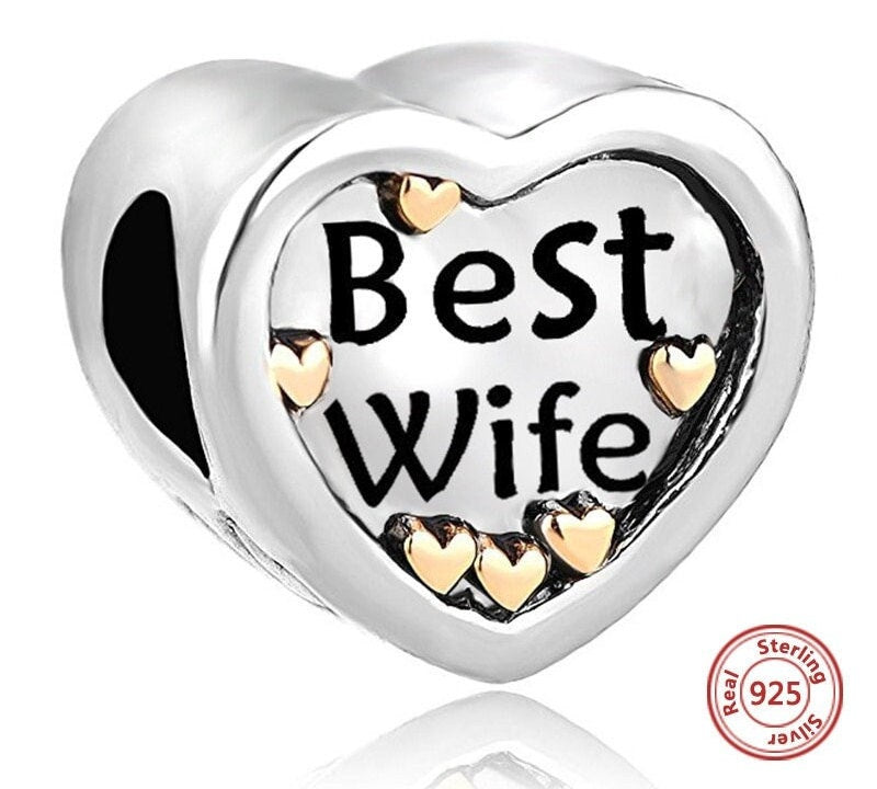 Best Wife Heart Charm Love you to the moon and back Heart 925 Silver Charm European style Bracelet, Necklace charm