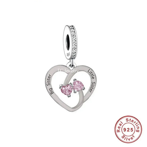 Big Sis Little Sis Sisters charm heart Charm 925 Silver Charm European style Bracelet, Necklace charm