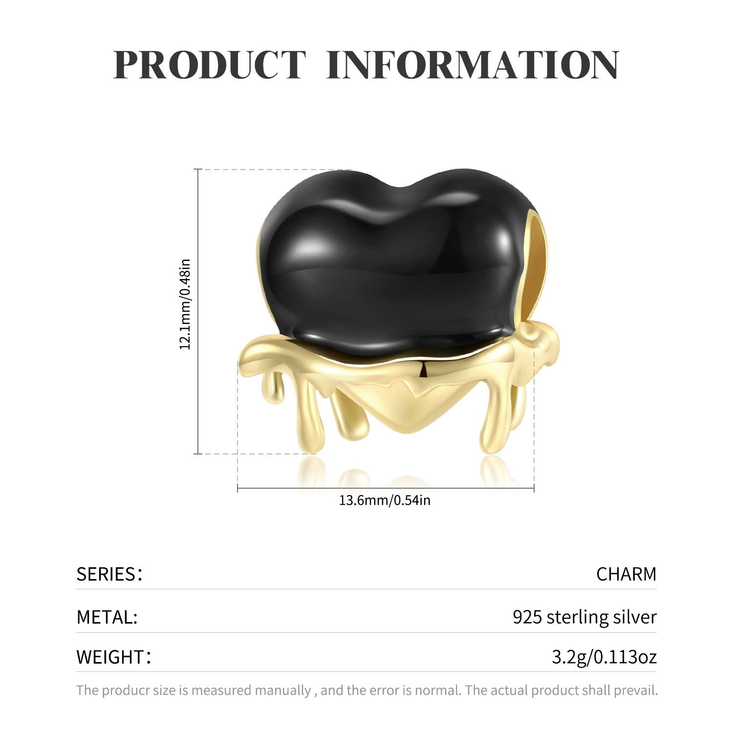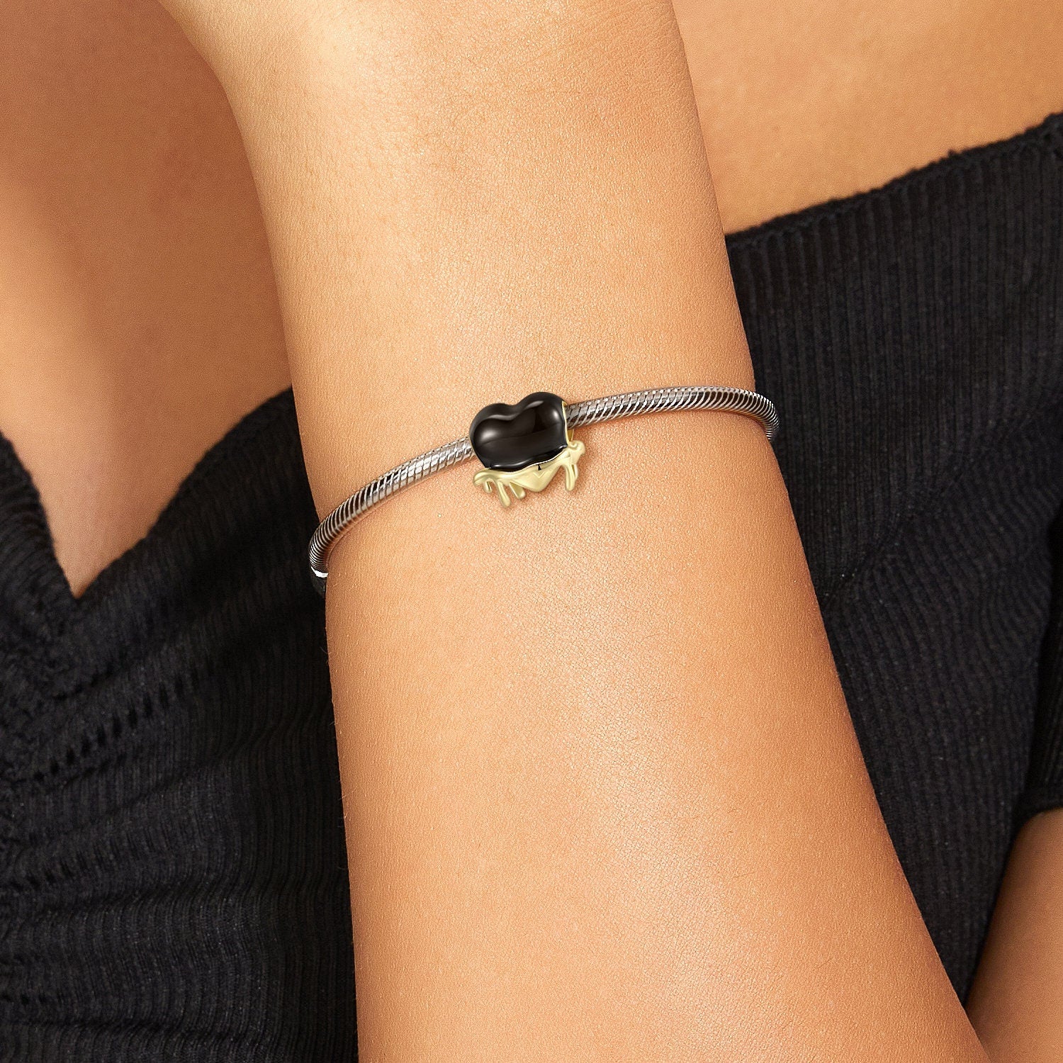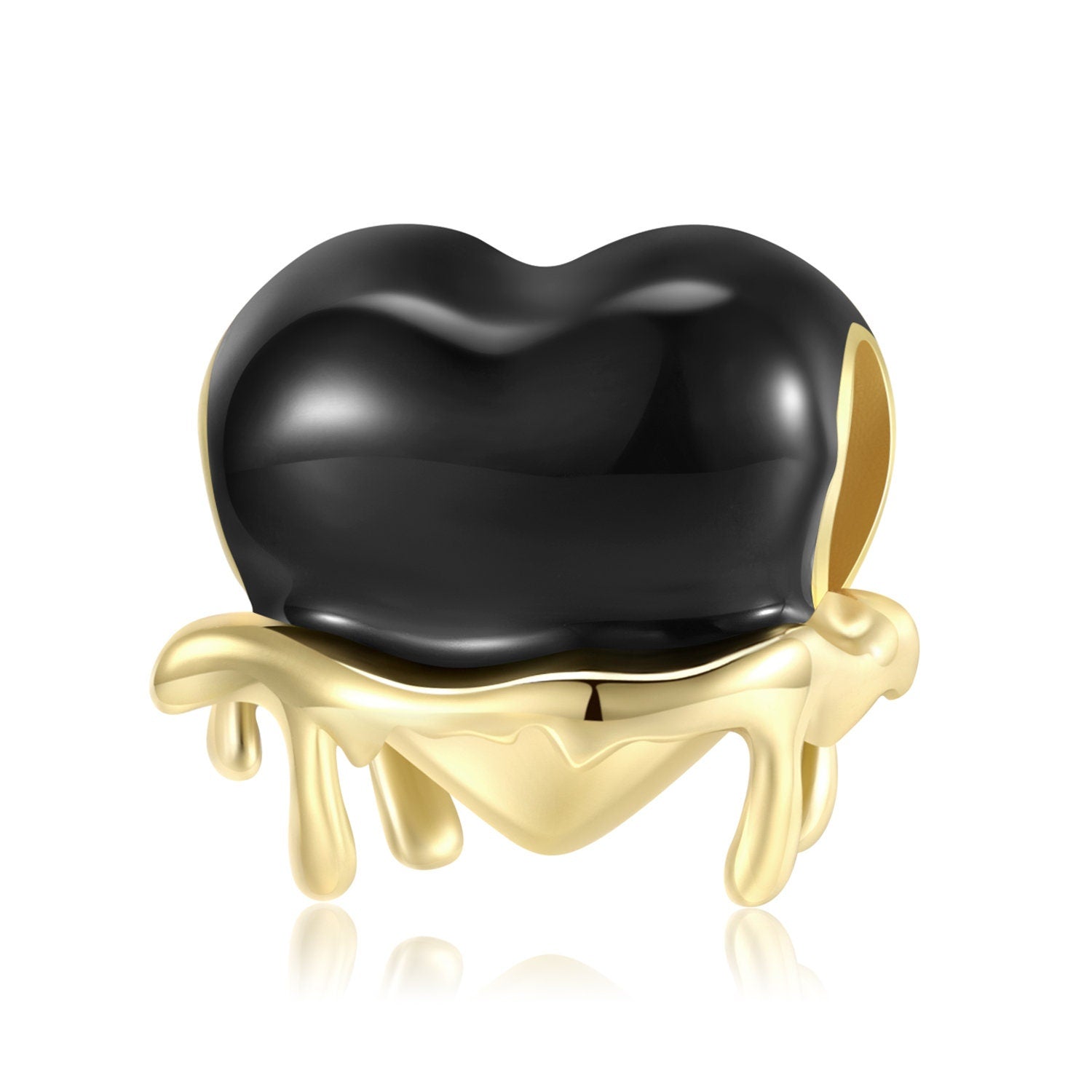 Black Heart Charm Black and gold heart Charm 925 Silver Charm European style Bracelet, Necklace charm, Lovers gift