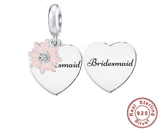 Bridesmaid Heart Charm European style Bracelets, 925 Sterling Silver, Wedding gift, Bridesmaid gift, Bride gift
