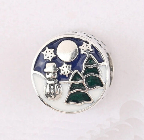 Christmas Snowman Snowy Wonderland charm, Christmas charm Genuine 925 Sterling Silver Charms Gifts for her Christmas gift, Christmas Charm
