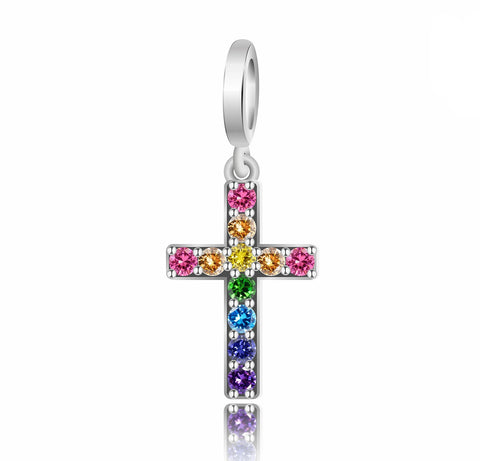 Colorful Cross Pendant Charm 925 Silver Charm European style Bracelet, Necklace charm, 925 Charm Religious gift, Cross charm
