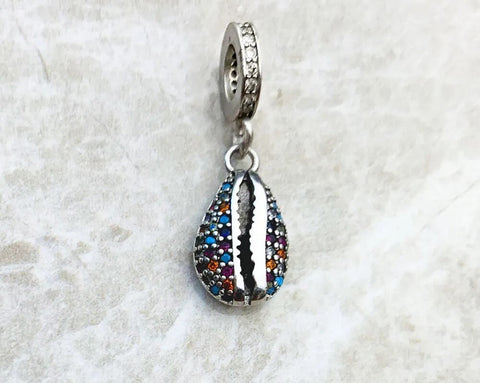 Cowrie Seashell charm Shell charm Beach Sea charm European style Charm Sterling Silver Charm, Bracelet ,Necklace Charm, 925 Charm