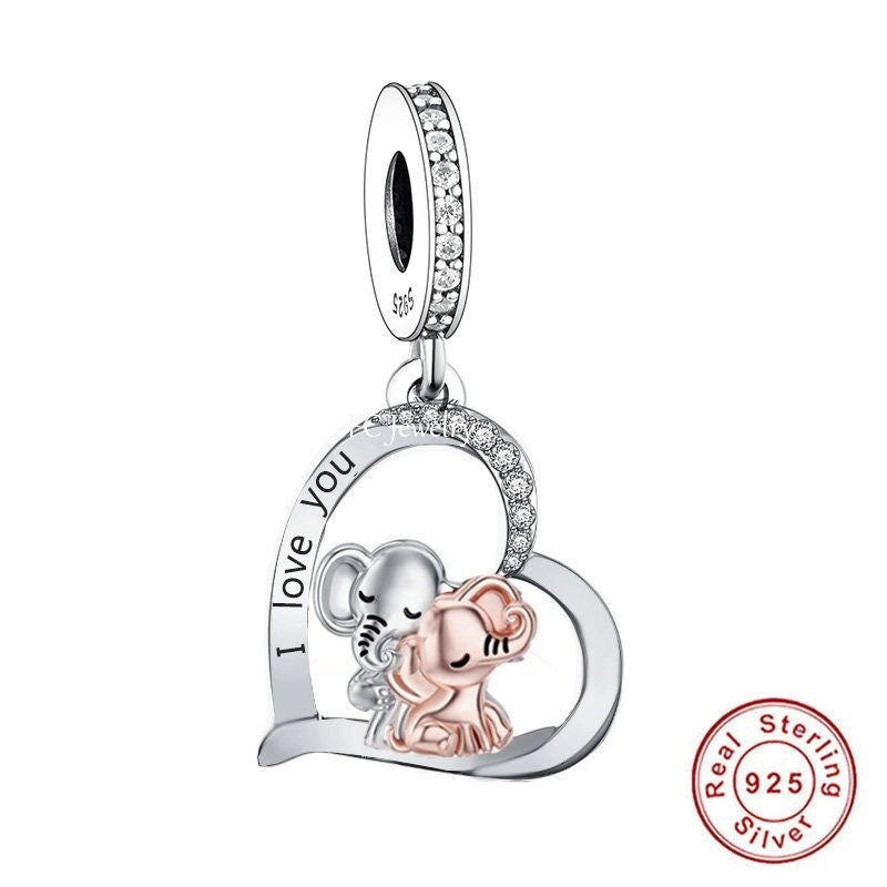 Elephant I Love You Forever Mom and child charm Best Friends Charms 925 Silver Charm European style Bracelet Necklace Charm 925