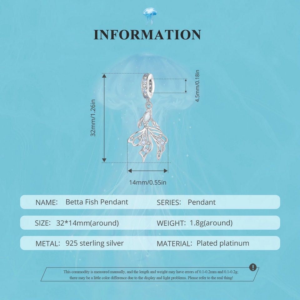 Fish Charm Brand New S925 Sterling Silver Betta Fish charm 925 Sterling Silver Fits all Charm Bracelets