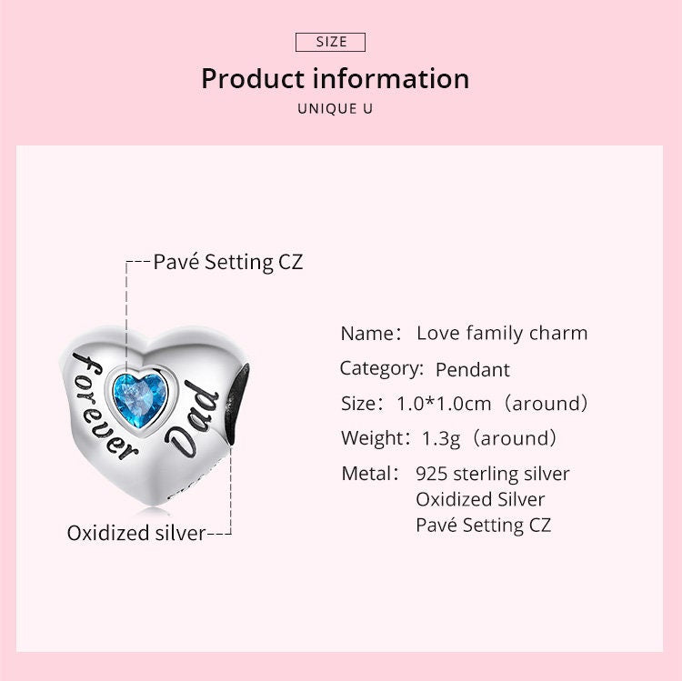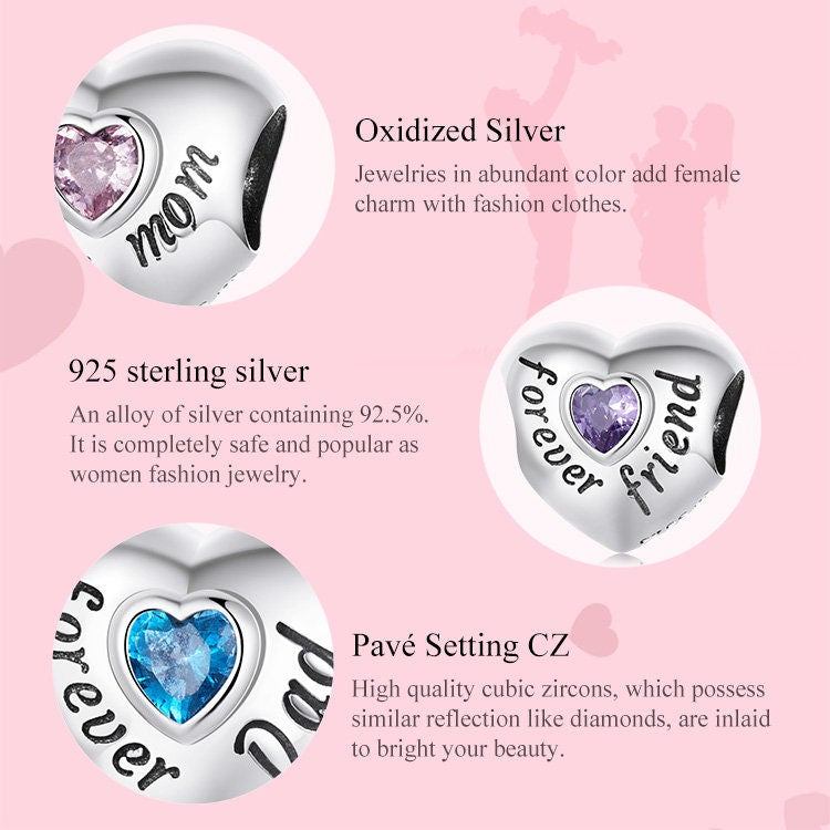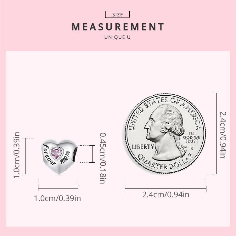 Forever mom charm, mom Heart Charm Heart 925 Silver Charm European style Bracelet, Necklace charm