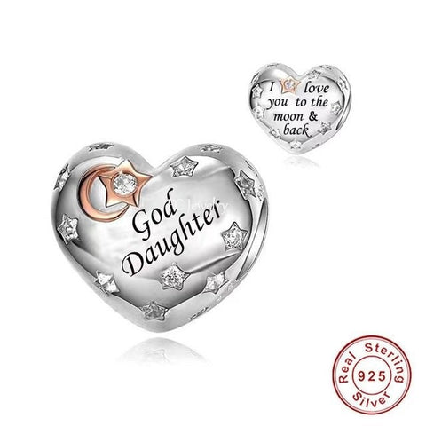 God daughter Heart Charm Love you to the moon and back Heart 925 Silver Charm European style Bracelet, Necklace charm