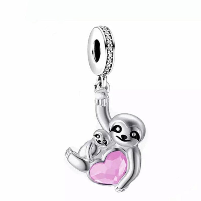 Hanging Sloth and Baby Charm European style Bracelets,925 Sterling Silver,Sloth Necklace Pendant,Sloth Jewelry,Sloth Gift,Sloth Heart Charm