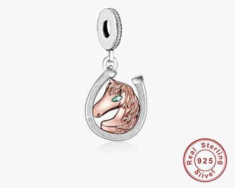 Horse Head + Mane in Horse Shoe Dangle Charm - Perfect Gift Idea- Fits all Charm Bracelets Horse Jewelry, Horse Pendant