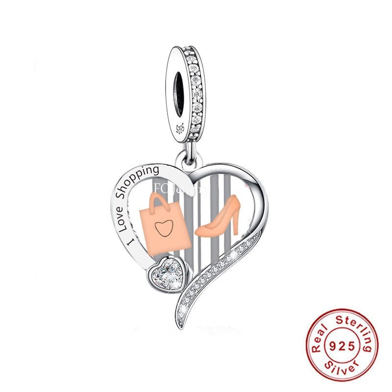 I Love Shopping Charm European style Bracelets, 925 Sterling Silver, Shopping Necklace Pendant, Shopping Jewelry, Shopping Bracelet Charm