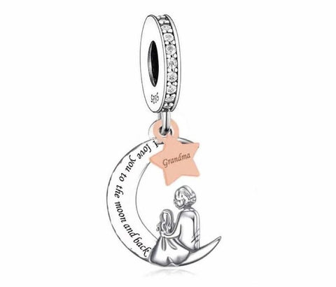 I Love You Mom Auntie Grandma Charm European style Bracelets, 925 Sterling Silver, I Love You Mom Auntie Grandma Jewelry Gift Keepsake
