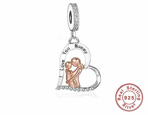 I love you Mommy New baby and daughter Charms 925 Silver Charm European style Bracelet , Necklace Charm 925 Charm Heart charm