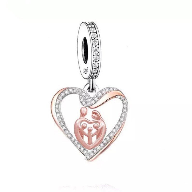 Loving Family Charm European style Bracelet, 925 Sterling Silver, Mom Dad Children Jewelry, Family of 5 Gift, Family Tree Jewelry Keepsake
