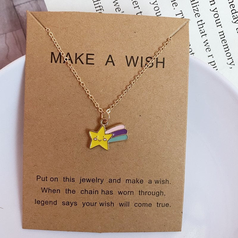 Make a Wish Friendship Necklace with Charm Rainbow Star Pendant, Rainbow star necklace