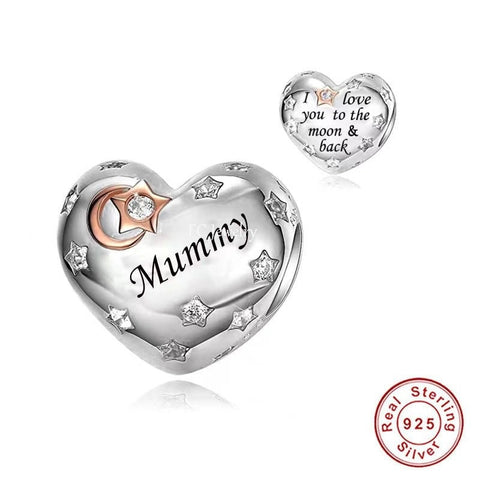 Mummy Heart Charm I Love You to the Moon and Back 925 Silver Charm European style Bracelet, Necklace charm