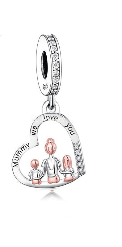 Mummy We Love You Heart Charm I Love You to the Moon and Back 925 Silver Charm European style Bracelet, Necklace charm