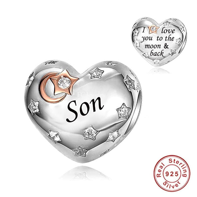 Son Heart Charm I Love You to the Moon & Back Heart 925 Silver Charm European style Bracelet, Necklace charm
