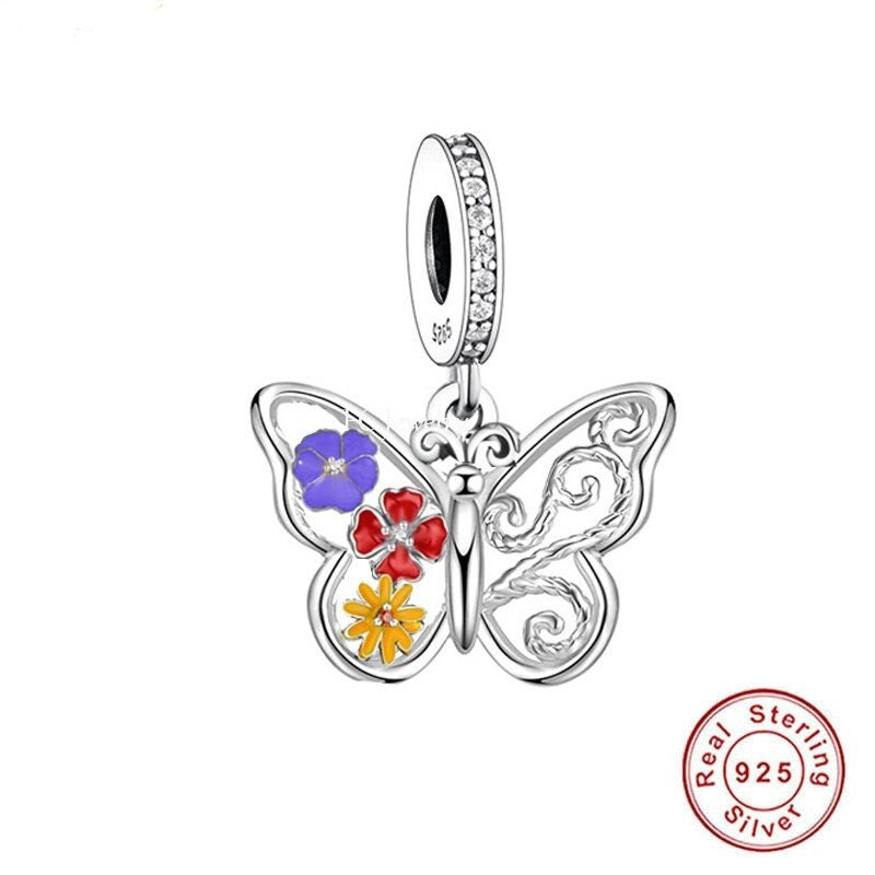 Spring In Bloom Butterfly charm, Fits European style Charm 925 Sterling Silver Charm, Charm