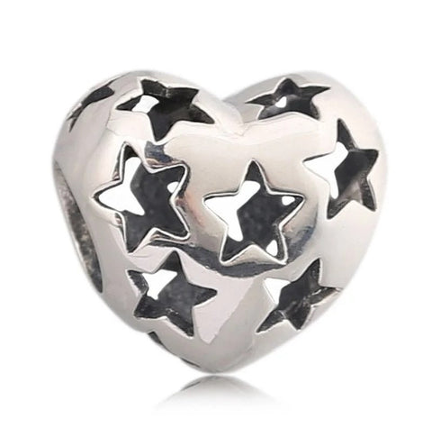 Stars and Heart charm Brand New S925 Sterling Silver Heart Charm Charm Fits all Charm Bracelets