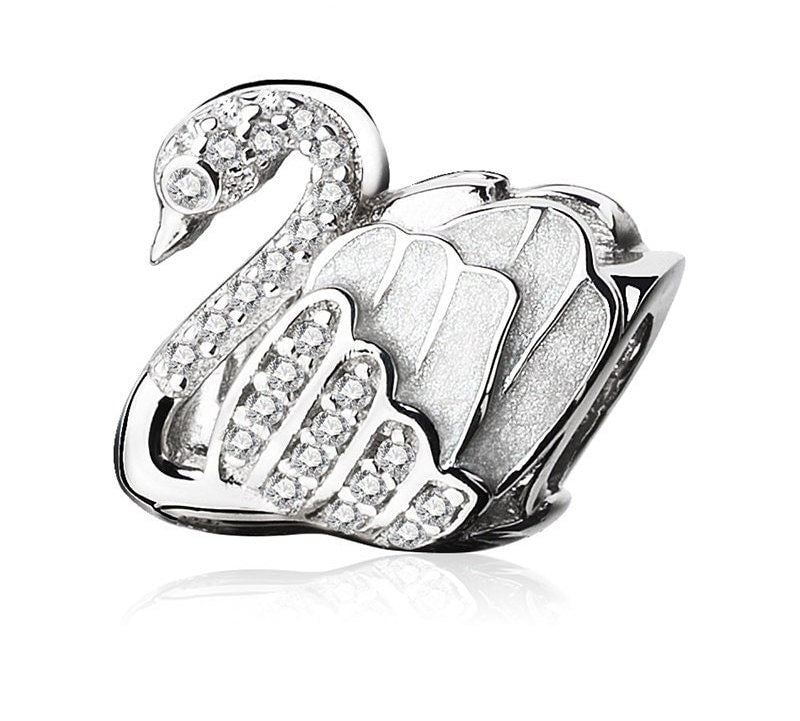 Swan Charm European style Bracelets, 925 Sterling Silver, Swallow Jewelry, Winter Swan Gift, Swan Bracelet Charm Austrian zircons