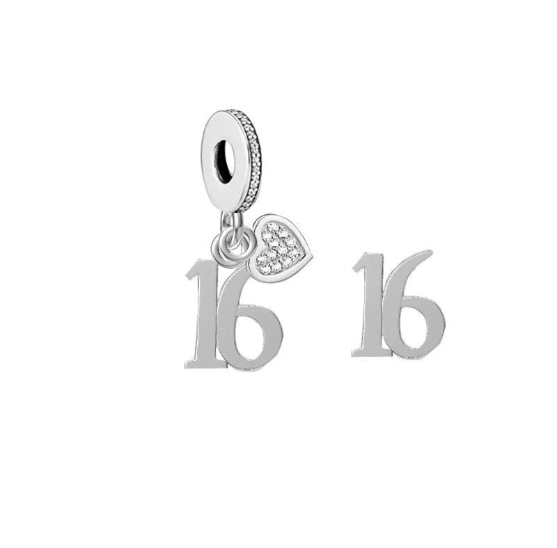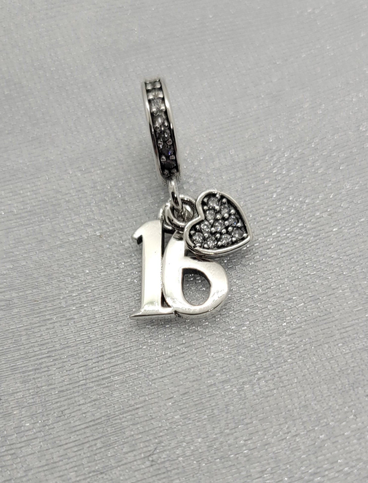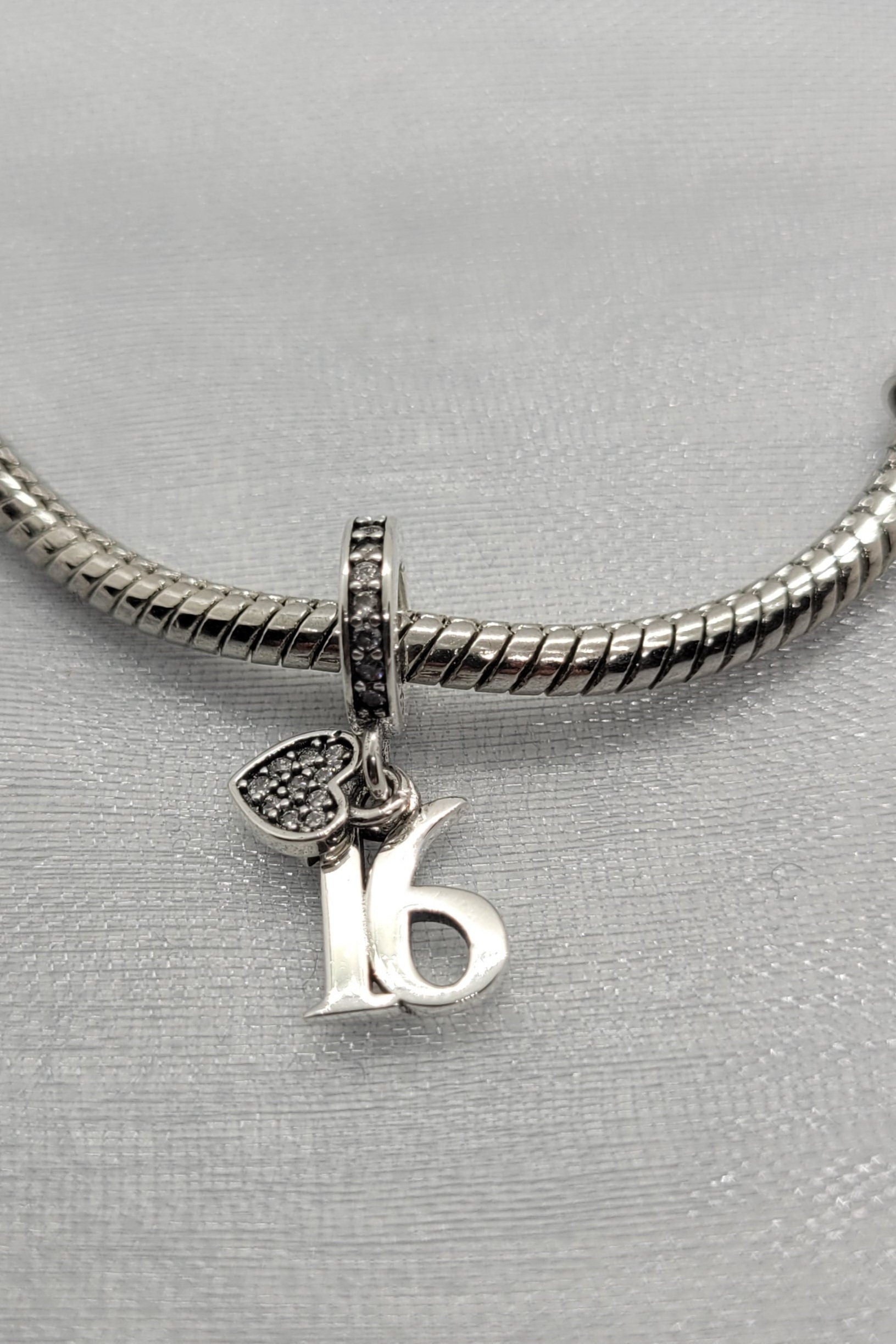 Sweet 16th Birthday 925 Sterling Silver 16th Birthday Dangle Charm Bead Landmark Birthday Fits all Charm Bracelets Heart charm