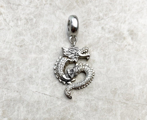 White CZ Dragon Charm European style Bracelets, 925 Sterling Silver, Dragon Jewelry, Dragon Lover Gift Dragon Pendant Dragon Keepsake